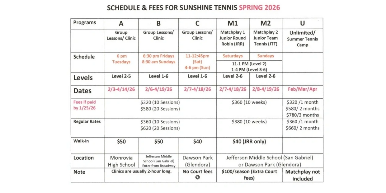 Since 2010, Sunshine Tennis School have offered various robust tennis programs and training ALL-YEAR ROUND!
