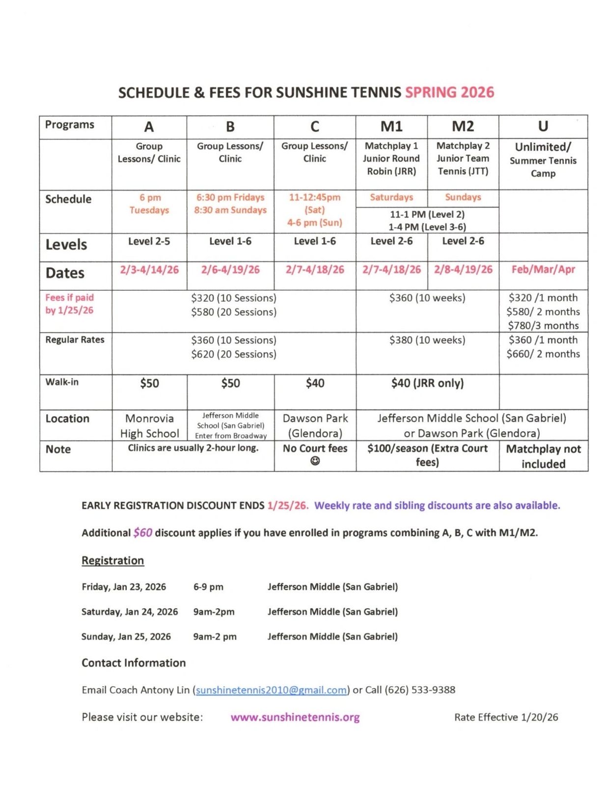 Come Register for the Spring Season!