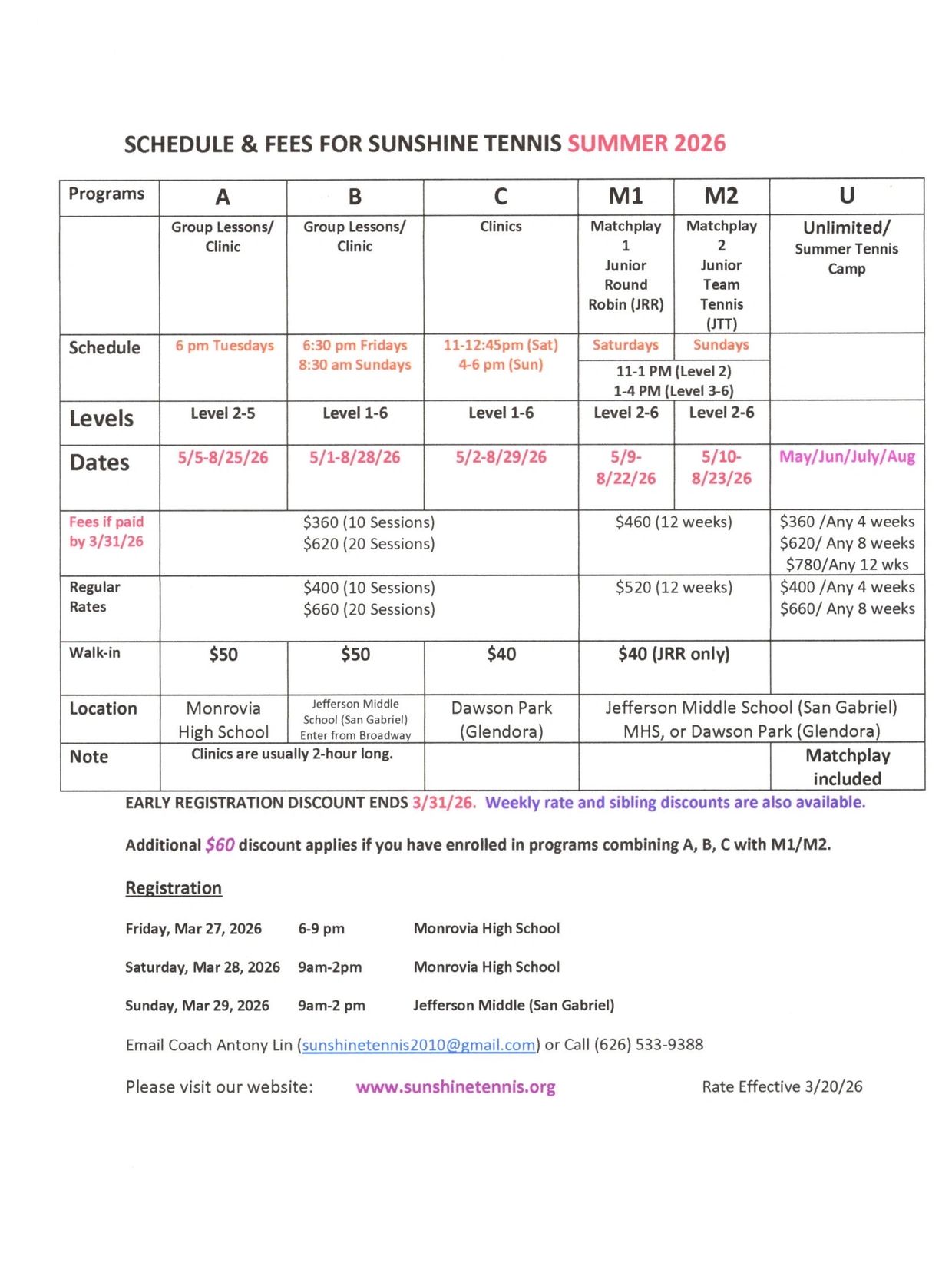 Come Register for the Summer Season!